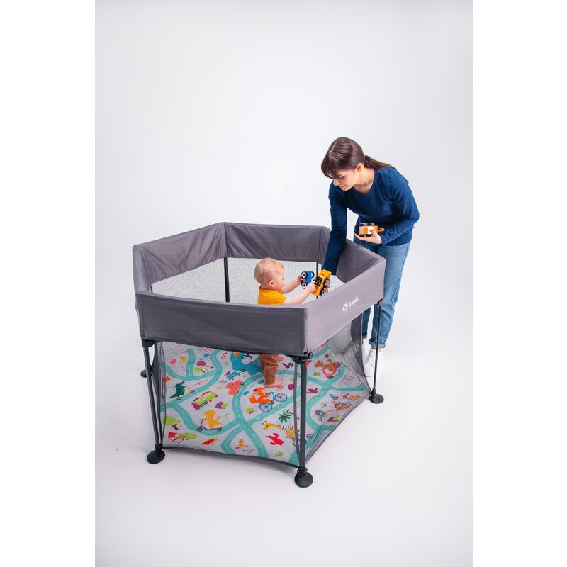 Tarcul de joaca Roel ajuta la organizarea spatiilor de joaca atat acasa, cat si in aer liber. Sistemul sau de pliere rapid si sigur la dimensiuni mici si geanta de transport sunt perfecte in cazul calatoriilor.