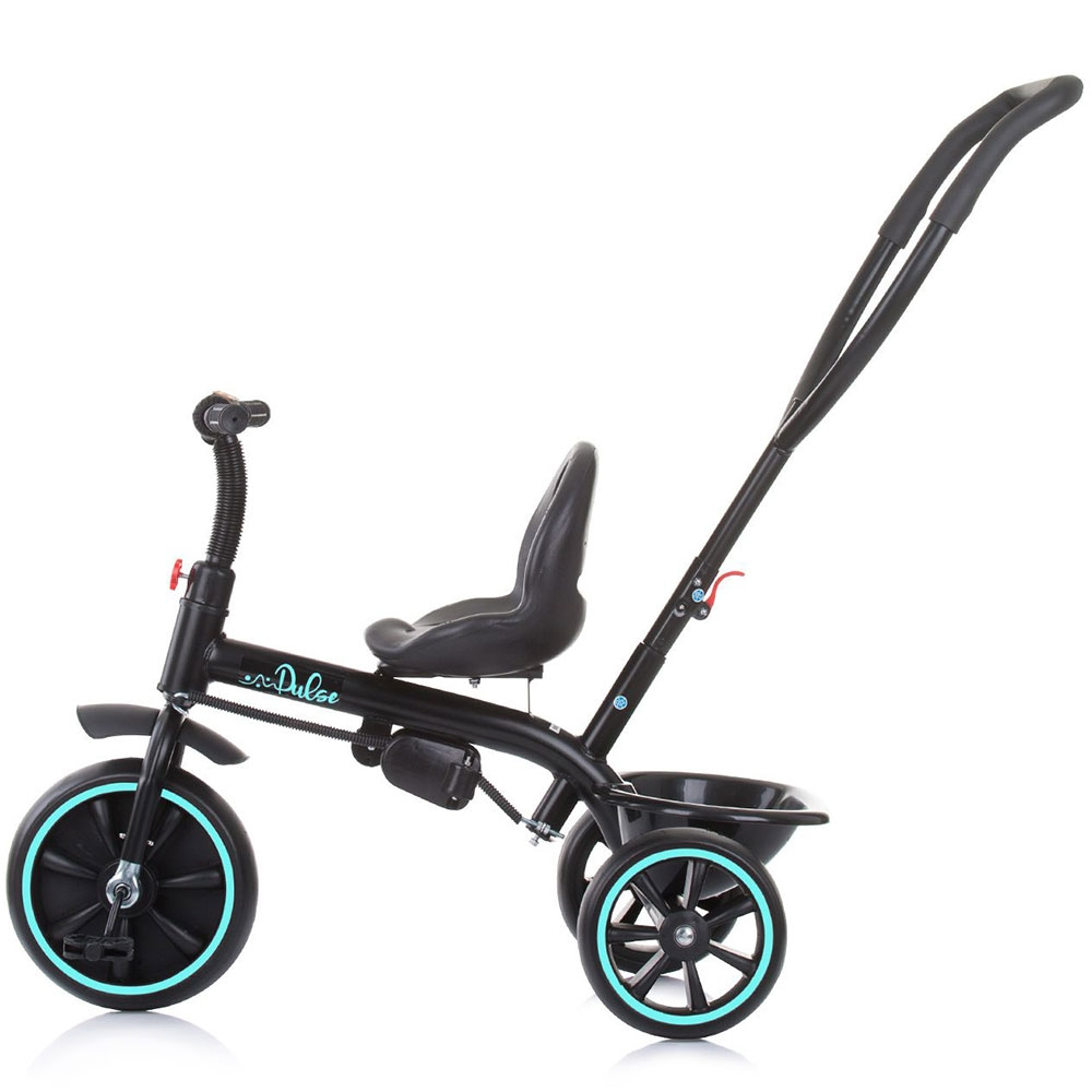 Tricicleta Chipolino Pulse pentru copii cu varsta incepand de la 1,5 ani, cu o greutate de pana la 25 kg. Produs multifinctional, poate fi pus in miscare de catre parinte prin actionarea manerului sau de catre copil prin actionarea pedalelor.